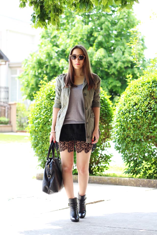 Jakna (parka) C&A, majica (top) LEE COOPER, šorts (skort) PERSUNMALL| here, čizme (boots) PRADA, tašna (purse) H&M, naočari (sunglasses) PRAY EYEWEAR, pristenje (rings) poklon (gift). Ph. Željko Bovan
