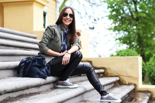 Jakna (jacket) ROMWE, haljina (dress) thanks to DRESS VENUS, cipele (shoes) JIMMY CHOO for H&M, naočari (sunglasses) WCshades, tašnica (clutch) i narukvica (bracelet) stare (vintage). Ph. Željko Bovan