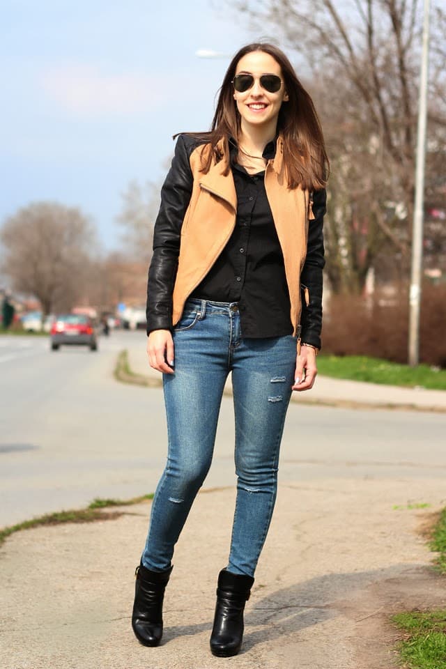 Jakna (jacket) ROMWE, košulja (shirt) MARC O’POLO, farmerke (jeans) thanks to ROSEWHOLESALE, čizme (boots) PRADA, sat (watch) FOSSIL, naočari (sunglasses) RAY-BAN. Ph. Željko Bovan