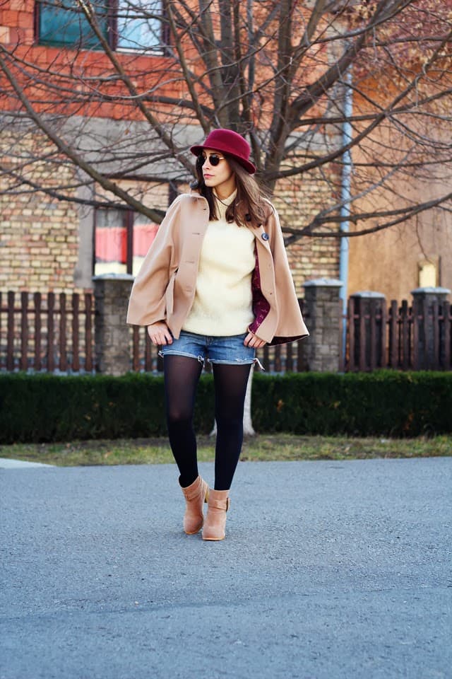 Pelerina (cape) F&F girl, džemper (sweater) WOOF, šorts (shorts) MOGUL, šešir (hat) H&M, čizme (boots) thanks to OASAP| here, naočari (sunglasses) thanks to WCshades| here. Ph. Željko Bovan