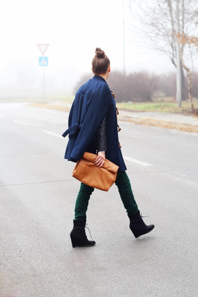 Pelerina (cape), pantalone (pants), čizme (boots) i tašna (clutch) ZARA, majica (top) H&M, jakna (jacket) ROMWE| here, ogrlica (necklace) thanks to FRONT ROW SHOP| here. Ph. mama