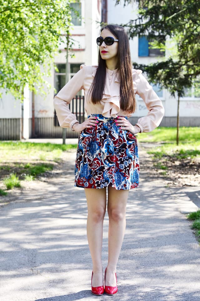 Photos by Srđan Živanov. Košulja (shirt) H&M, suknja (skirt) NeoNit, cipele (shoes) MIU MIU, prsten (ring) SIX, naočari (sunglasses) bez imena (no name).