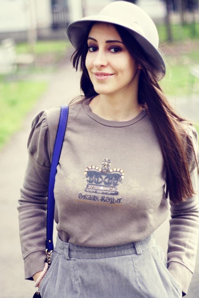 Duks (sweater) OKAIDI, suknja (skirt) stara (vintage) čizme (boots) MISS SIXTY girl, tašna (purse) thanks to Oasap, šešir (hat) H&M.