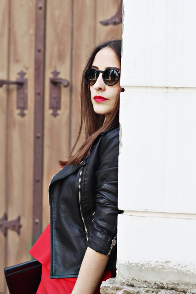 Jakna (jacket) ROMWE, haljina (dress) thanks to DRESS VENUS, cipele (shoes) JIMMY CHOO for H&M, naočari (sunglasses) WCshades, tašnica (clutch) i narukvica (bracelet) stare (vintage). Ph. Željko Bovan