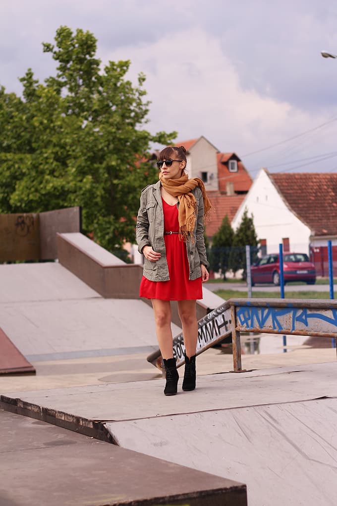 Jakna (parka): C&A, haljina (dress): ZNU, čizme (boots): Zara, kaiš (belt): Extra Sekendica, naočari (sunglasses): Wcshades, marama (scarf): Tie Rack. Ph. Željko Bovan