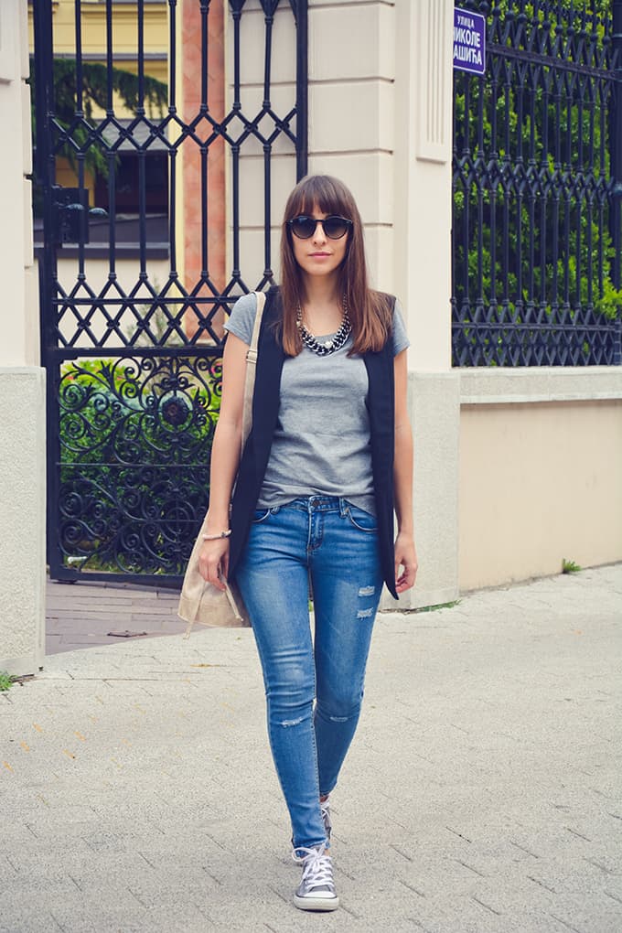 Sako (blazer) i prstenje (rings): Oasap, majica (top): Lee Cooper, pantalone (pants): Zara, patike (sneakers): Converse, tašna (purse): Jellyfish Art, naočari (sunglasses): Freyrs, ogrlica (necklace): Lucluc. Ph. Gordana…